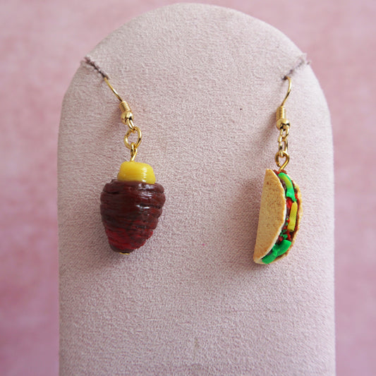 Aretes taquito de pastor y trompo ganchito