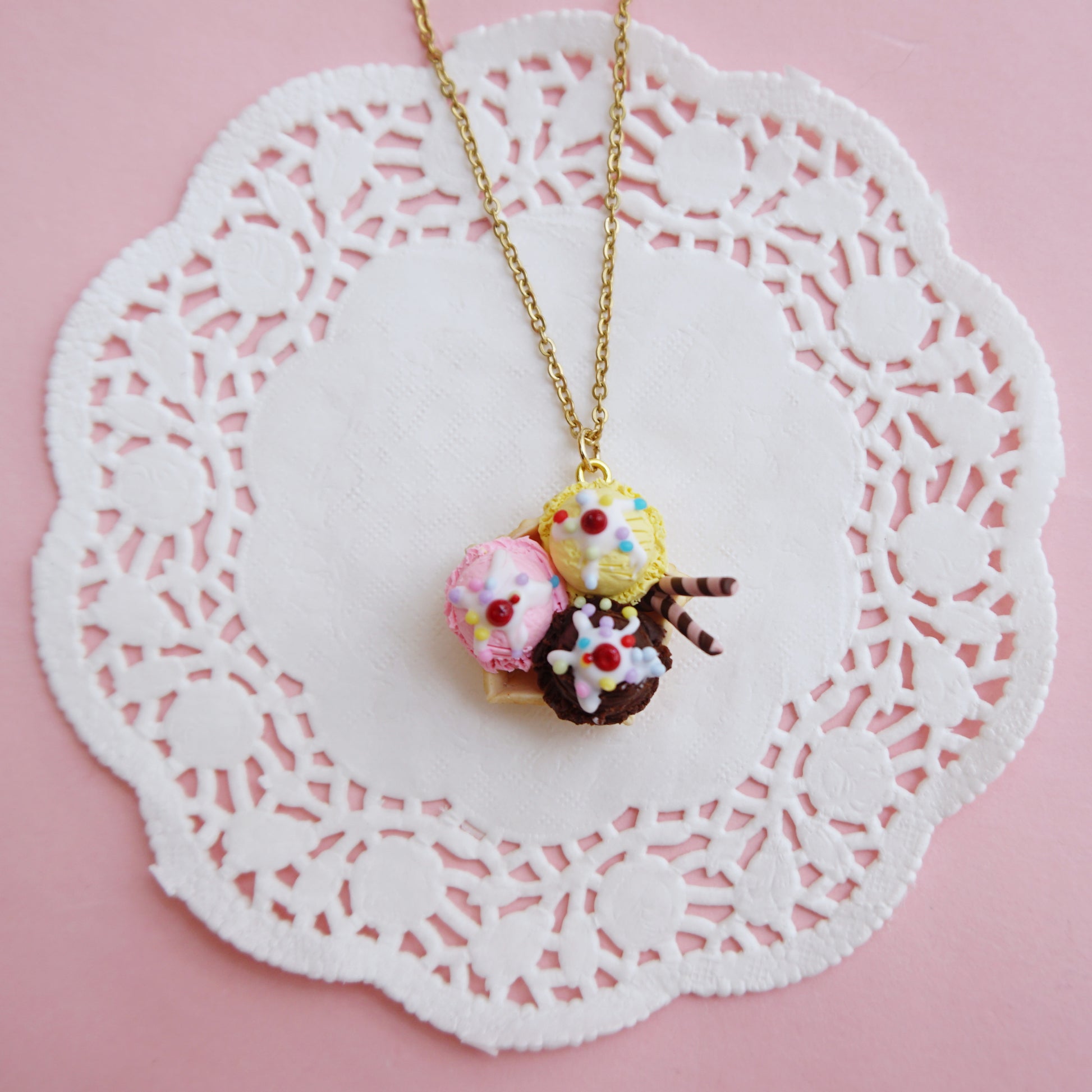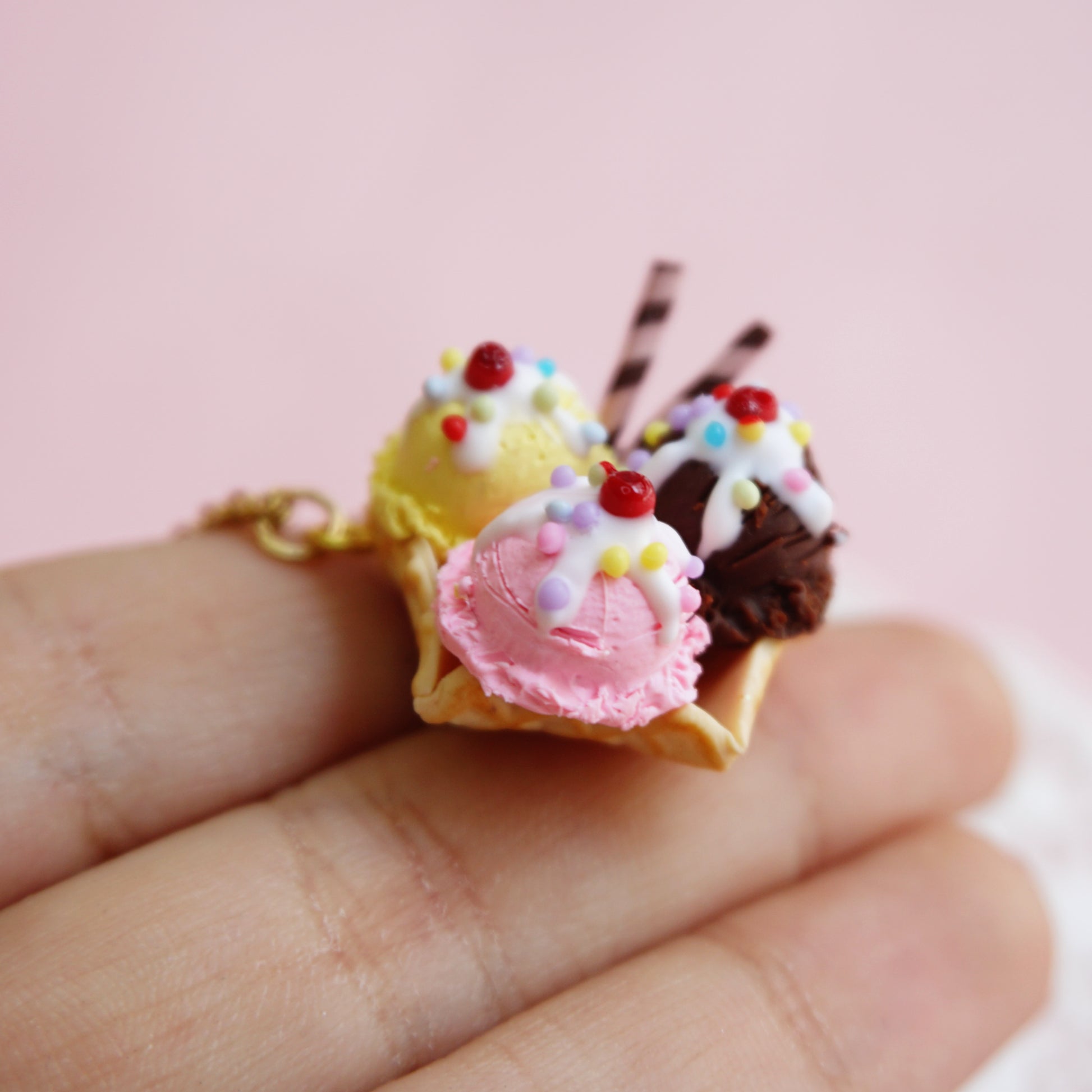 Lucen tan reales que puedes ver los pequeños detalles en la textura del helado y de su canasta con su tono doradito. ♥ Hechos a mano con arcilla polimérica.